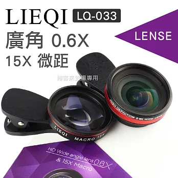 LIEQI【LQ-033 廣角 0.6X + 15X 微距 手機鏡頭】手機 鏡頭 轉接 夾式 LQ033 廣角 微距