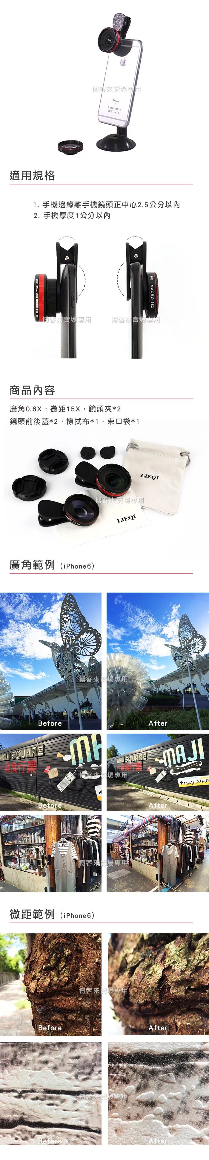 LIEQI【LQ-033 廣角 0.6X + 15X 微距 手機鏡頭】手機 鏡頭 轉接 夾式 LQ033 廣角 微距 評價